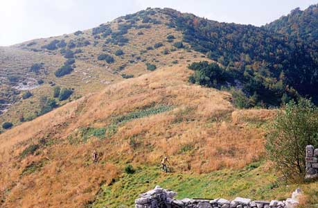 To je res tura za prave pustolovce, združuje verjetno najlepše prečenje v naših hribih in težaven, kamnit spust po izredno speljani vojaški poti, ki pa jo je zob časa in potres pred nekaj leti na žalost zelo načel, zato ni prevozna v taki meri, kot sem si želel. Prav žal mi je bilo, da nisem začel kolesariti nekaj let prej, kajti pred potresom je bila brez težav prevozna skoraj cela. Res pa je tudi, da bi jo nekaj dovolj zagnanih kolesarjev v nekaj dneh z ustreznim orodjem naredilo skoraj celo prevozno (torej, zbiram prijave!). |